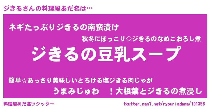 | ヘコむあだ名 | 『ジきお』『ジきにゅー』『なまこ酢』 |