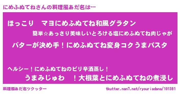 | 女子向けラノベタイトル風あだ名 | 『にめふぬてね恋絵巻』 |