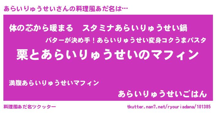 | 意味不明あだ名 | 『あらいりゅうせいフォーエバー』 |