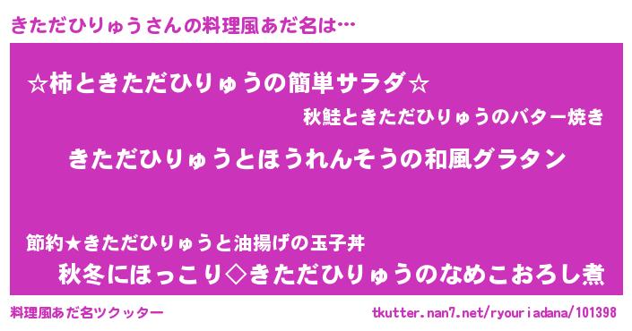 | 女子向けラノベタイトル風あだ名 | 『きただひりゅうの玉の輿計画!』 |