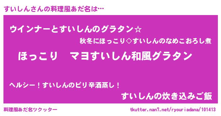 | ピコ太郎風あだ名 | 『ピス三郎』『ピコス郎』『スイ六郎』 |