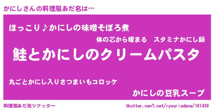 | ヘコむあだ名 | 『かにもー』『かにお』『酢こんぶ』 |