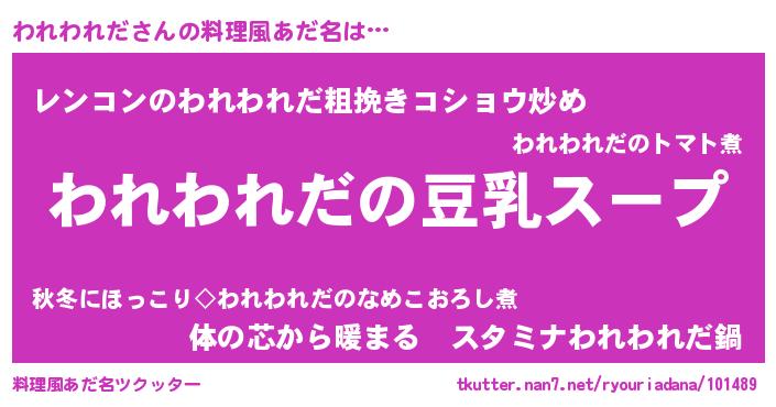 | 胡散臭い通販商品みたいなあだ名 | 『信頼と実績のサプリメント…その名も「われわれだ」』 |