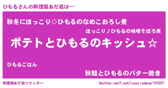 | 女子向けラノベタイトル風あだ名 | 『ひもるの卵を拾いまして』 |