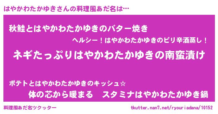 | 可愛いあだ名 | 『はんはん』『はやかわたかゆきママ』 |