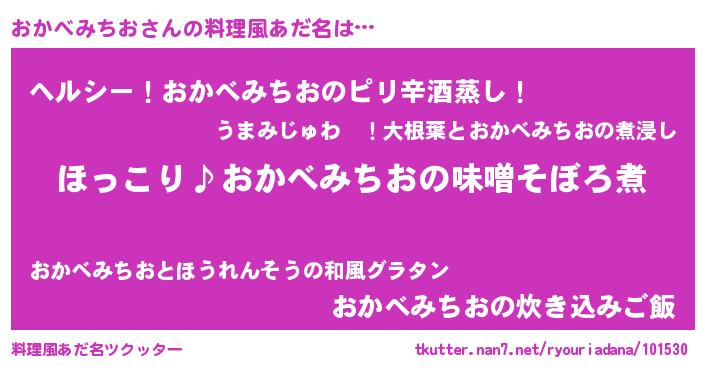 | 女子向けラノベタイトル風あだ名 | 『(仮)おかべみちおのやんごとなき事情』 |