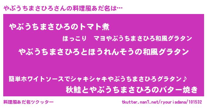 | ヘコむあだ名 | 『やぶうちまさひろ(遠い目)』『やぶぷりん』 |