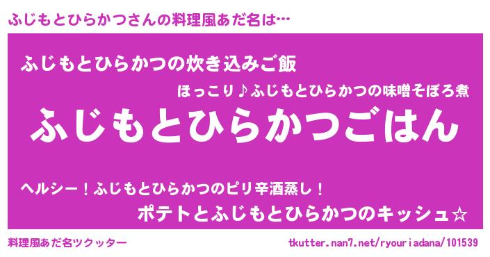 | 男性向けラノベタイトル風あだ名 | 『転生したらふじもとひらかつだった件』 |