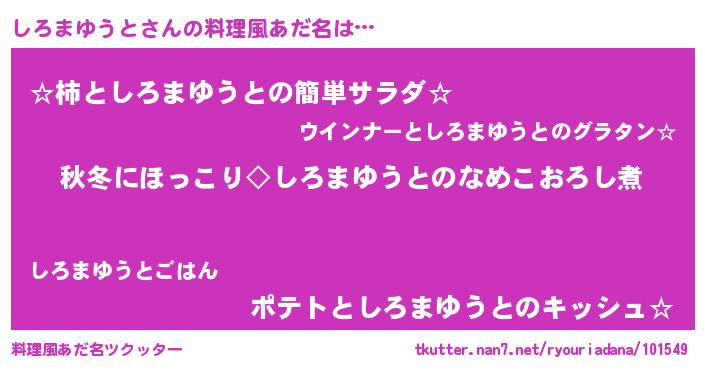 | 意味不明あだ名 | 『とにかく怪しいしろまゆうと』 |
