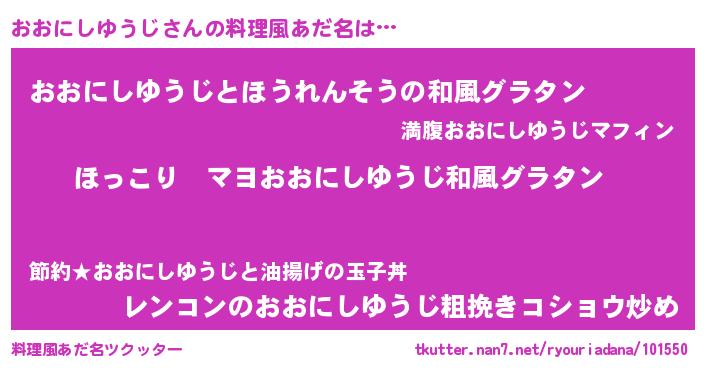 | 意味不明あだ名 | 『住所不定無職おおにしゆうじ(13歳)』 |