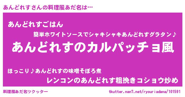 | 女子向けラノベタイトル風あだ名 | 『あんどれすが死なない童話 林檎のあんどれすの診療簿』 |