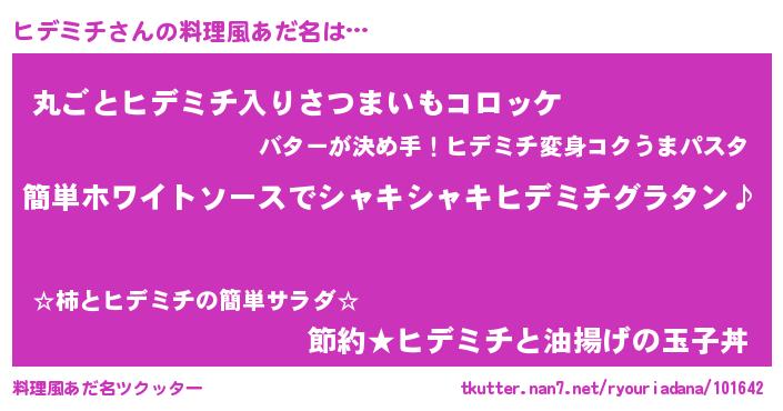 | 女子向けラノベタイトル風あだ名 | 『ヒデミチ様がみてる』『ヒデミチ恋絵巻』 |