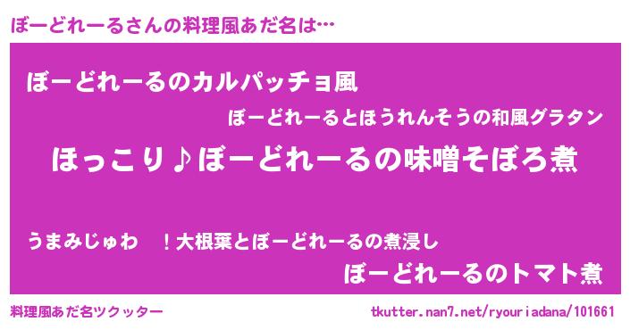 | 男性向けラノベタイトル風あだ名 | 『ぼーどれーるの憂鬱』 |