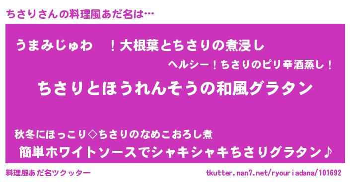 | 胡散臭い通販商品みたいなあだ名 | 『運命の人と巡り会える高級そうな壺…その名も「ちさり」』 |