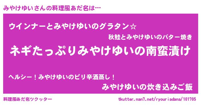 | 胡散臭い通販商品みたいなあだ名 | 『億万長者になれる水晶球…その名も「みやけゆい」』 |
