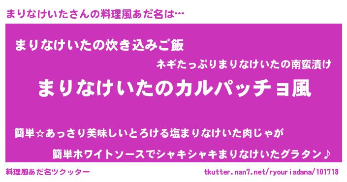 | 男性向けラノベタイトル風あだ名 | 『魔弾の王とまりなけいた』 |