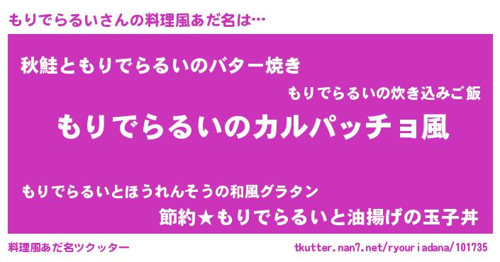 | 意味不明あだ名 | 『住所不定無職もりでらるい(77歳)』 |