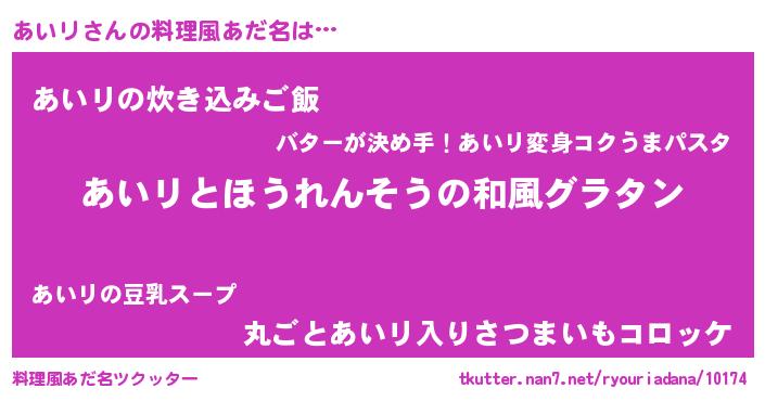 | 女子向けラノベタイトル風あだ名 | 『あいリの玉の輿計画!』『あいリ恋絵巻』 |