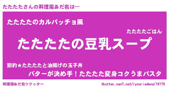 | 胡散臭い通販商品みたいなあだ名 | 『信頼と実績のサプリメント…その名も「たたたた」』 |