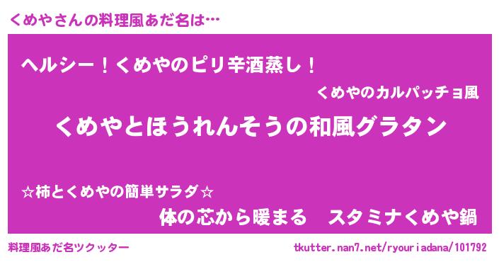 | 意味不明あだ名 | 『もやし科くめや属』『自称くめや』 |