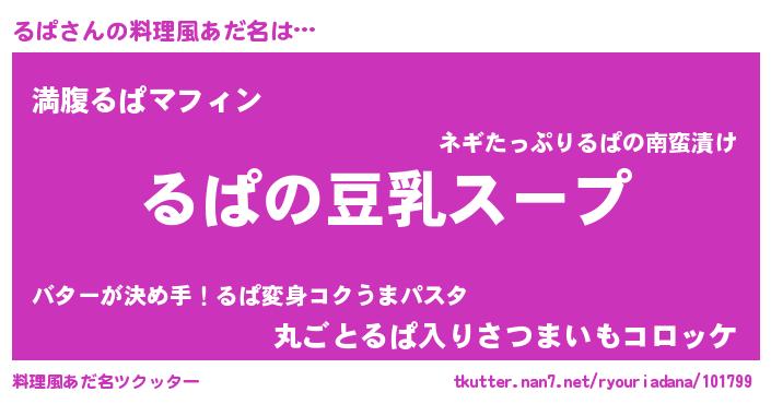 | 胡散臭い通販商品みたいなあだ名 | 『信頼と実績のサプリメント…その名も「るぱ」』 |