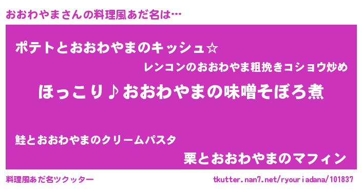 | 女子向けラノベタイトル風あだ名 | 『(仮)おおわやまのやんごとなき事情』 |