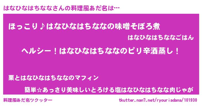 | 男性向けラノベタイトル風あだ名 | 『Re:はなひなはちななから始める異世界生活』 |