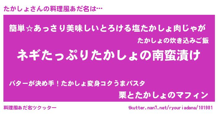 | 意味不明あだ名 | 『ペロリンたかしょ』『永久保存たかしょ』 |