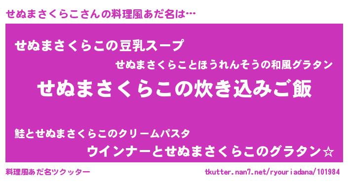| 意味不明あだ名 | 『とにかく怪しいせぬまさくらこ』 |