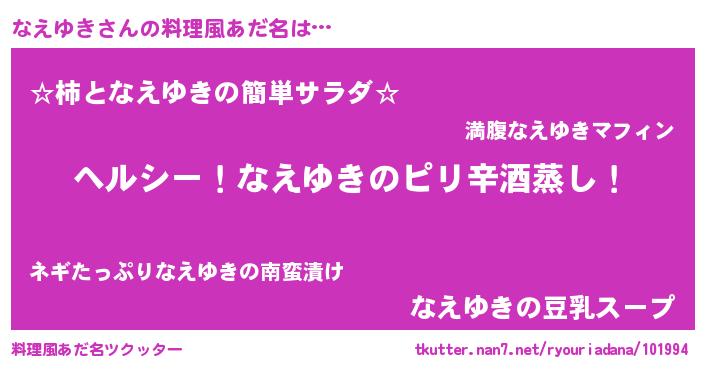| 意味不明あだ名 | 『自称なえゆき』『永久保存なえゆき』 |