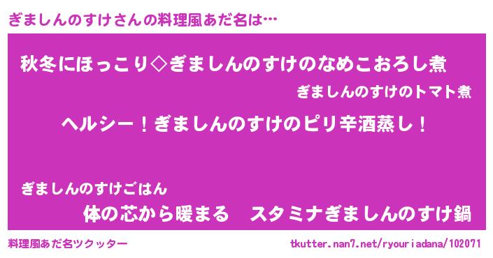 | 意味不明あだ名 | 『自称ぎましんのすけ』 |