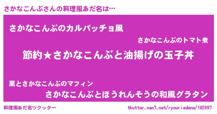 | 男性向けラノベタイトル風あだ名 | 『さかなこんぶの憂鬱』 |