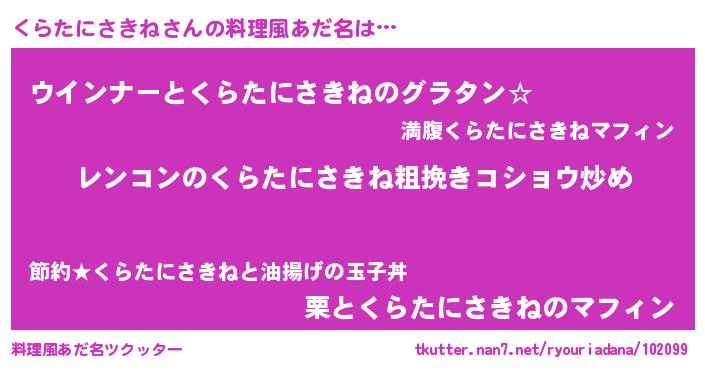 | 意味不明あだ名 | 『自称くらたにさきね』 |
