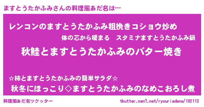 | 胡散臭い通販商品みたいなあだ名 | 『来世でも幸せになれる健康食品…その名も「ますとうたかふみ」』 |