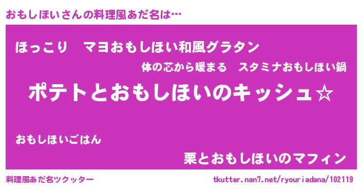 | 女子向けラノベタイトル風あだ名 | 『おもしほいの卵を拾いまして』 |