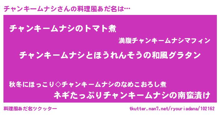| 女子向けラノベタイトル風あだ名 | 『チャンキームナシの玉の輿計画!』 |
