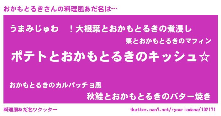 | 女子向けラノベタイトル風あだ名 | 『おかもとるきの卵を拾いまして』 |