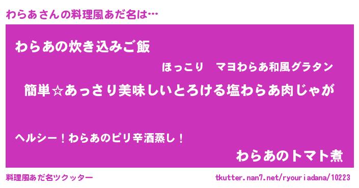 | ヘコむあだ名 | 『わらあ(震え声)』『わらにー』 |