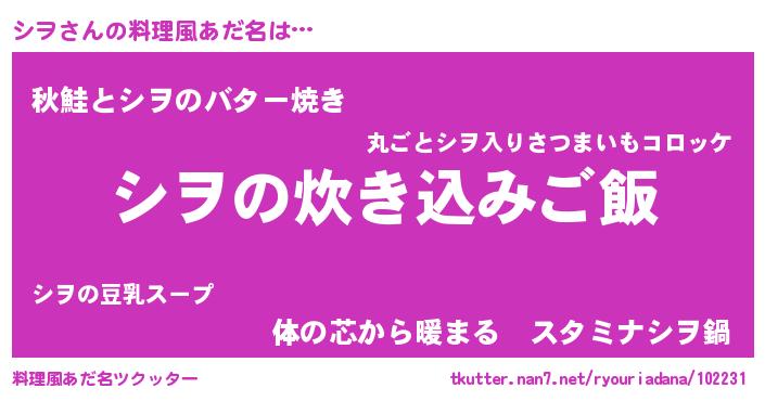 | ヘコむあだ名 | 『シヲ(爆)』『なまこ酢』『シヲっ子』 |