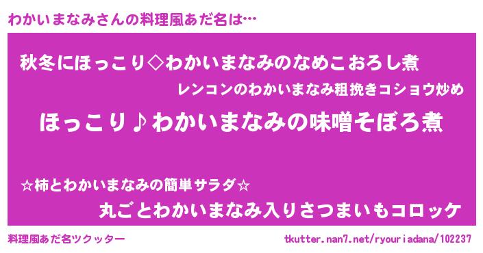 | 胡散臭い通販商品みたいなあだ名 | 『必ず成功するブレスレット…その名も「わかいまなみ」』 |