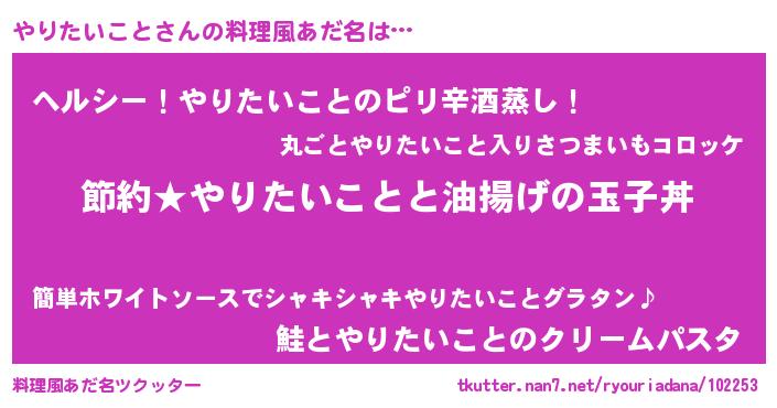 | ヒーロー風カッコイイあだ名 | 『スーパーヤリタイコト』『仮面ヤリダー』 |