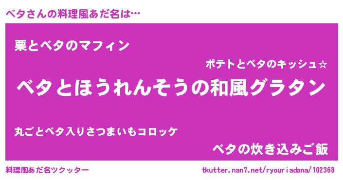| 胡散臭い通販商品みたいなあだ名 | 『伝統あるサプリメント…その名も「ベタ」』 |