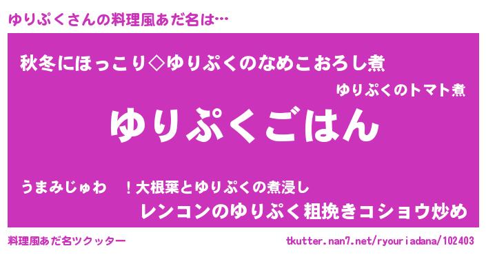 | 胡散臭い通販商品みたいなあだ名 | 『ガンによく効く高麗人参…その名も「ゆりぷく」』 |
