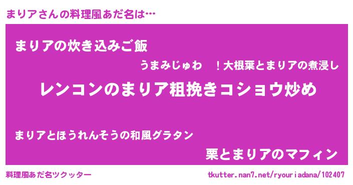 | 胡散臭い通販商品みたいなあだ名 | 『ガンによく効く高麗人参…その名も「まりア」』 |