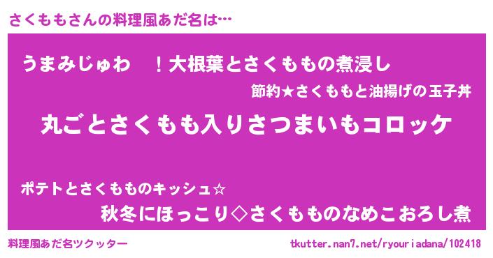| 意味不明あだ名 | 『住所不定無職さくもも(39歳)』 |