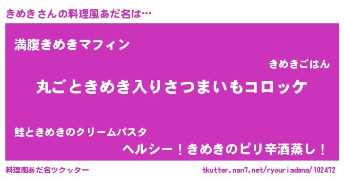 | 男性向けラノベタイトル風あだ名 | 『魔弾の王ときめき』『キメキスレイヤー』 |