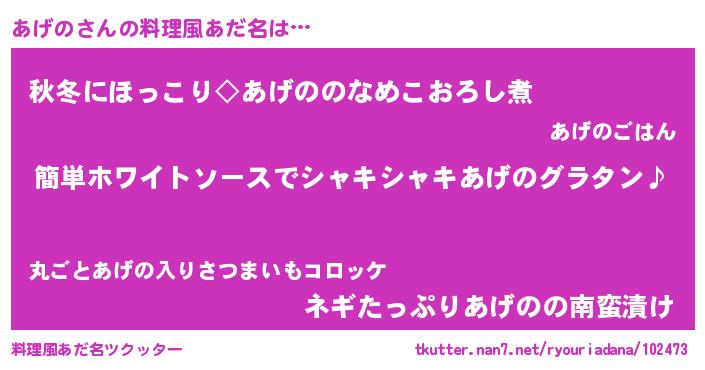 | 胡散臭い通販商品みたいなあだ名 | 『全米が絶賛したサプリメント…その名も「あげの」』 |