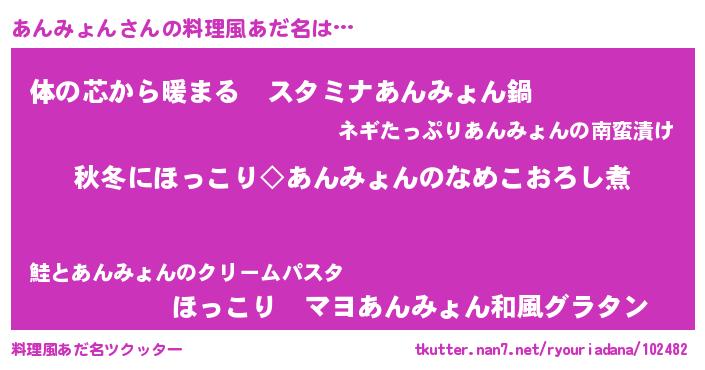 | 男性向けラノベタイトル風あだ名 | 『あんみょんに滅ぼされるだけの簡単なお仕事です』 |