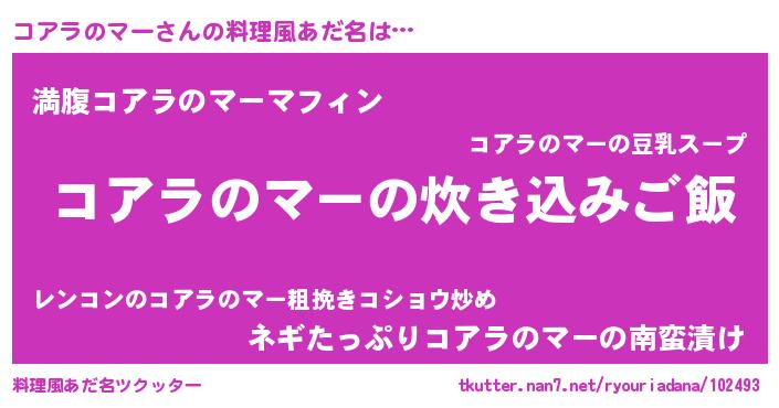 | 男性向けラノベタイトル風あだ名 | 『うちのコアラのマーが世界を掌握している!』 |