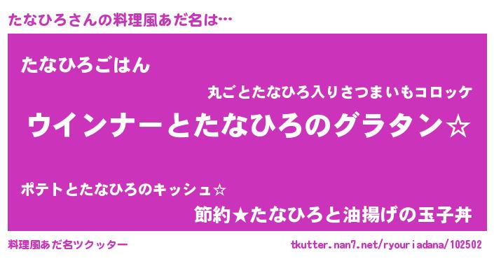 | ヒーロー風カッコイイあだ名 | 『ウルトラたなひろマン』『仮面タナダー』 |